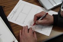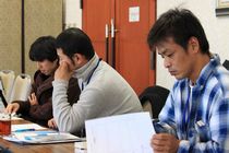 | 大下先生を講師として、見学した起業の舞台(物件)に、受講者の起業の夢を重ねて「起業デザイン」を作業シートに記入しました。 そうすることで自分の考えを整理するとともに、全体構想を描く際のポイントを学びました。 |